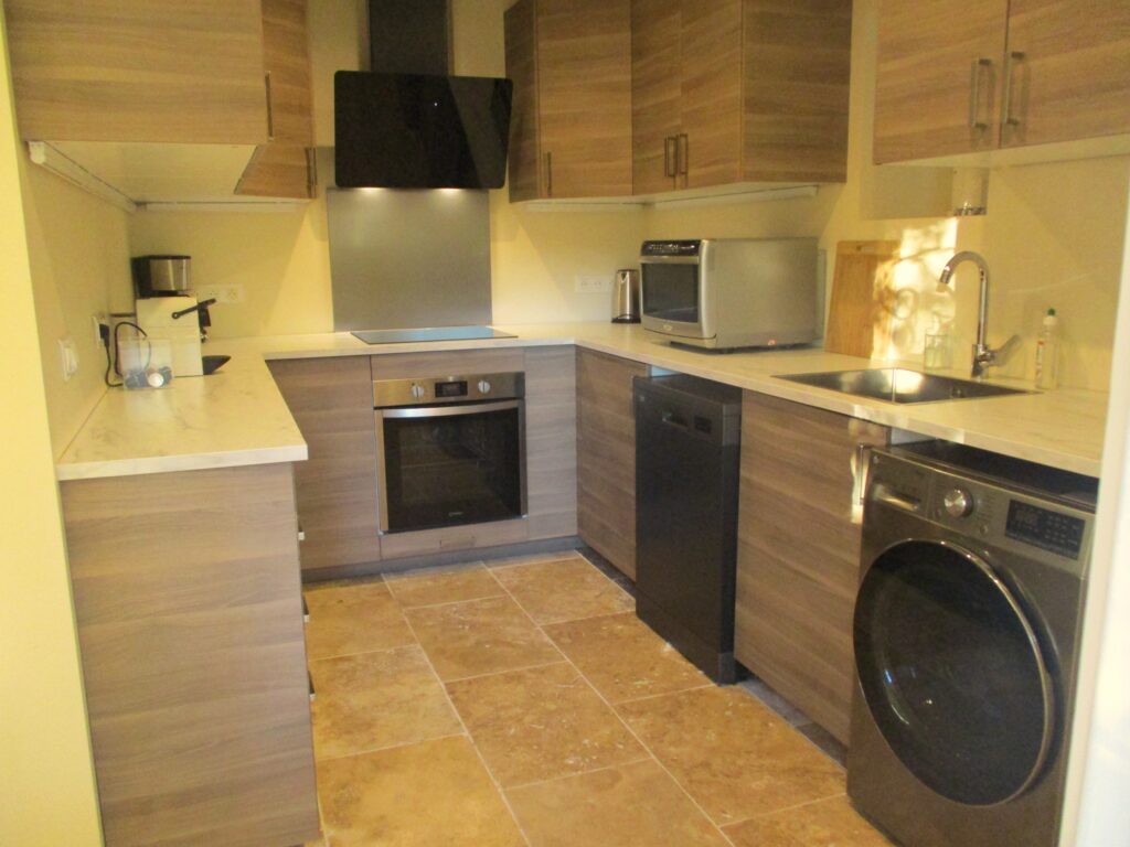 - Cuisine avec lave-vaisselle Beko, plaque induction Ariston (3 feux), four Ariston, machine à café Nespresso (capsules fournies), réfrigérateur-congélateur Samsung, micro-ondes Whirlpool et lave-linge LG.