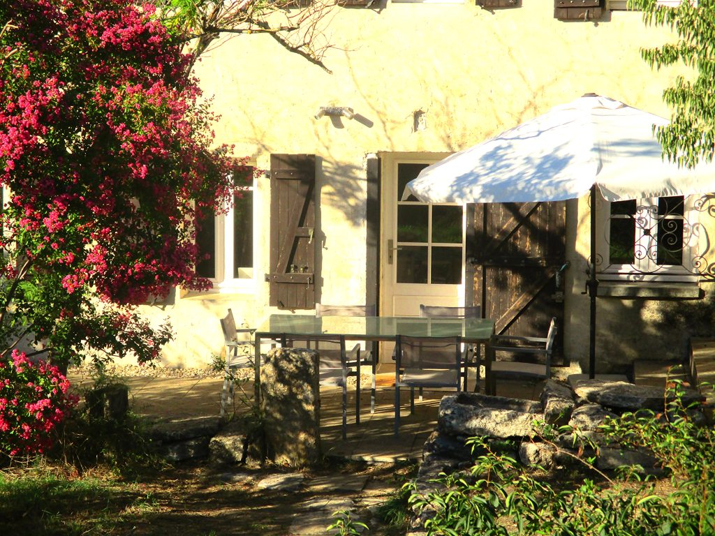 - Grande terrasse privative avec mobilier de jardin (grande table, 8 chaises, parasol).