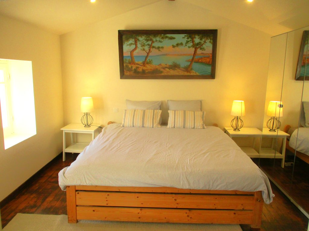 - Une première chambre avec lit king-size (180X200), située à l’étage. Chambre n°2 également située à l’étage, idéale pour les enfants, équipée de deux lits simples (90X200). Les deux chambres ont vue sur la piscine et disposent d’une salle de bains de 7m² avec douche, WC et lavabo.